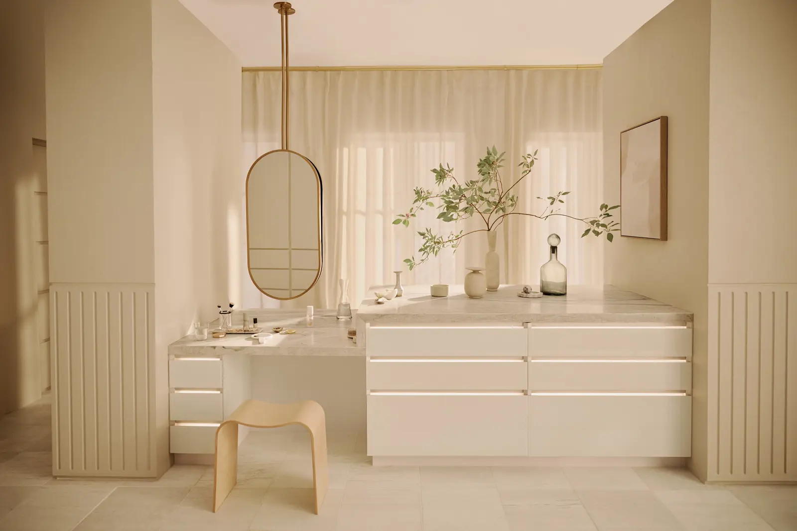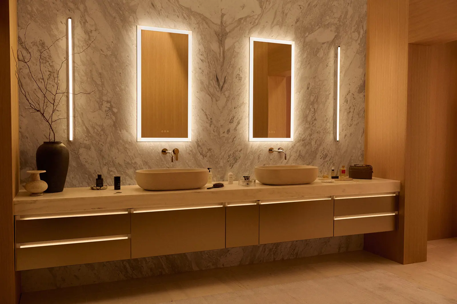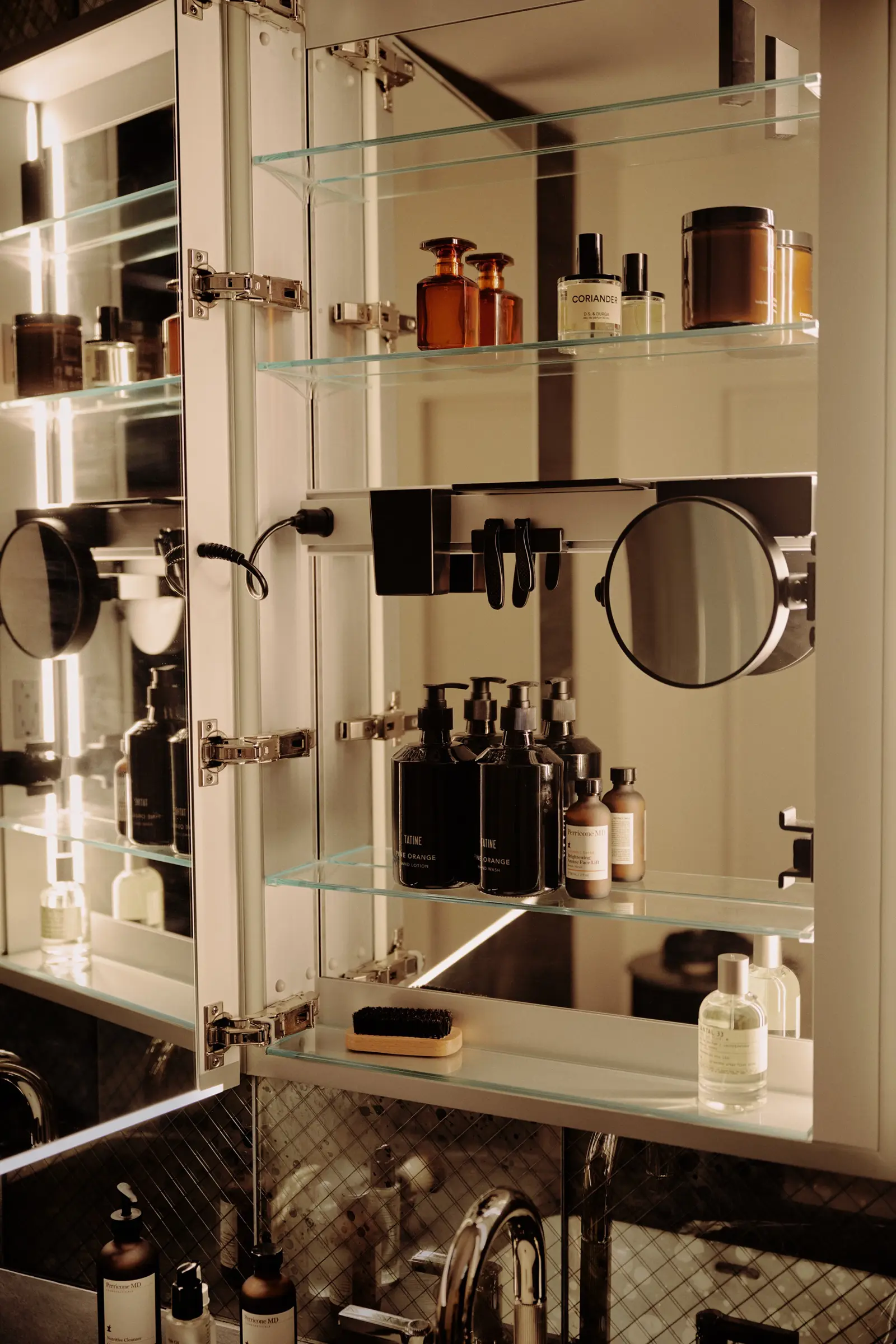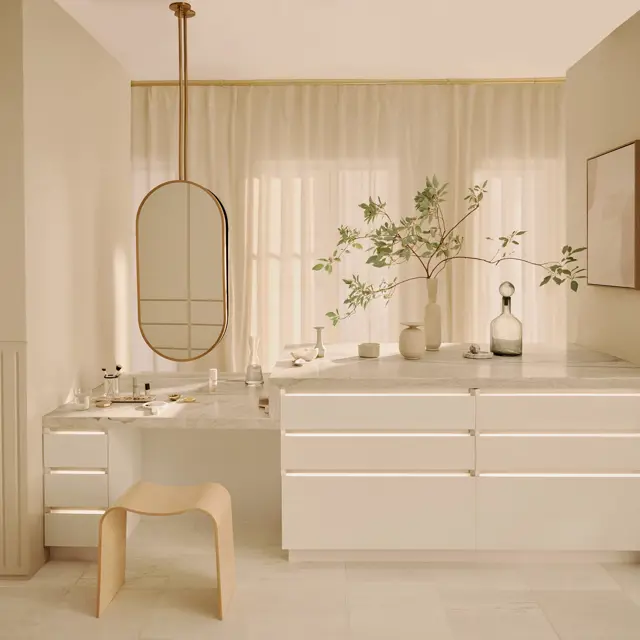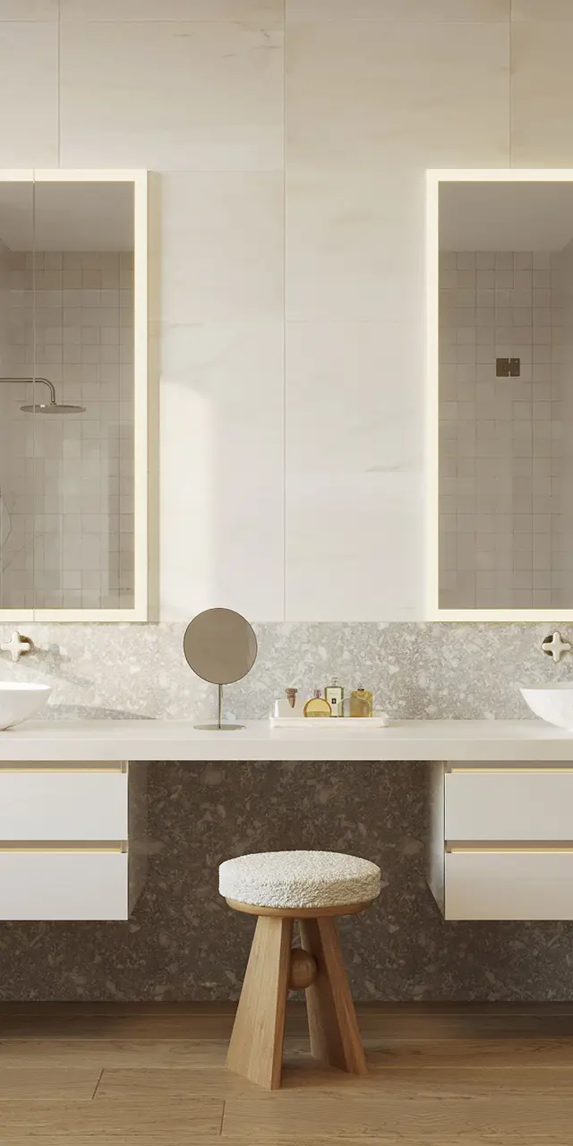 Choices like adding magnification mirrors to a styling space create a well-appointed and elevated design.