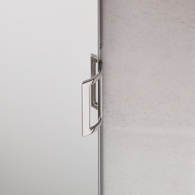 - The curved design of the handle allows for an ergonomic pull and provides an easy-to-reach alternative to the hidden pull on the door edge.