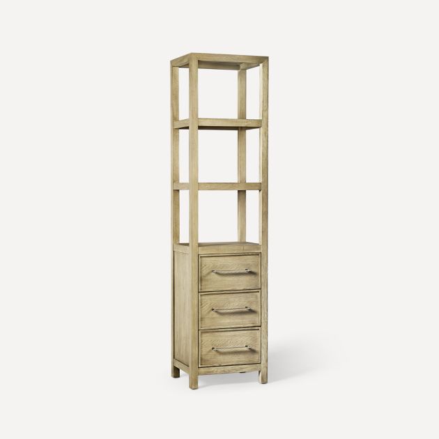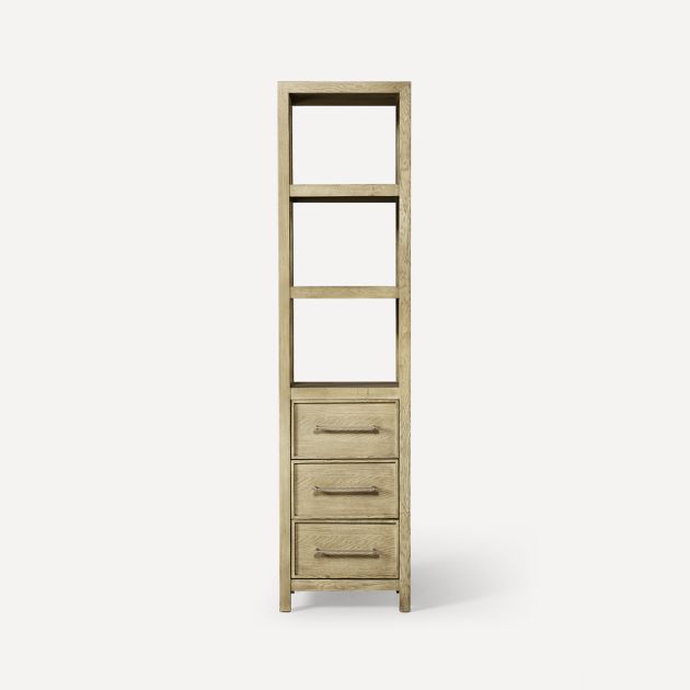 - Three shelves for open storage and three drawers for closed storage