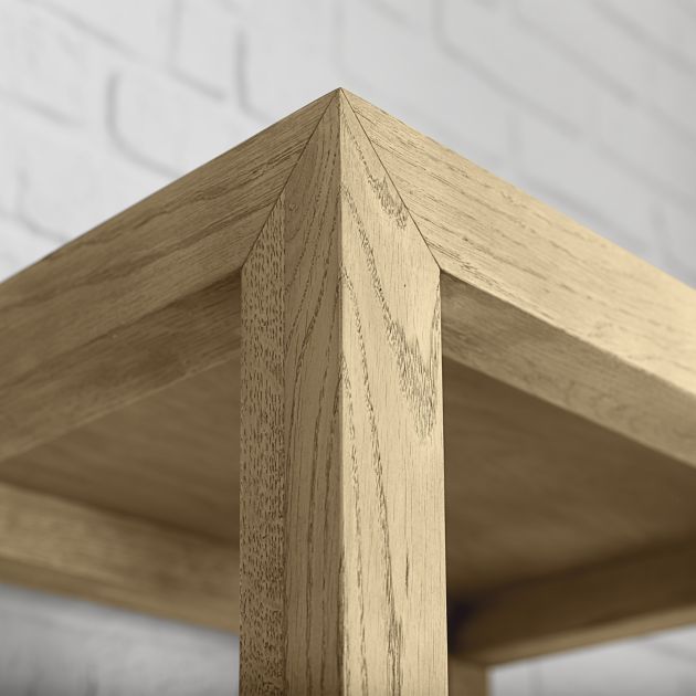 - Solid wood construction with mitered detail and 4-inch leg side profiles