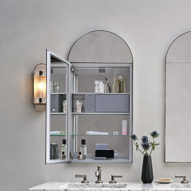 - The innovative design of the Murray Hill Collection nestles a recessed medicine cabinet within the soft curves of a framed pill or arch mirror. Thoughtful details and accessories enrich the everyday experience and make the getting-ready routine feel effortless.