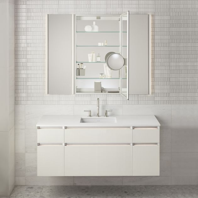 - Cabinets can be recessed or surface-mounted, providing flexible installation options to accommodate different wall construction types. Combine multiple cabinets, lighting or mirrors to maximize your storage capabilities without sacrificing style.
