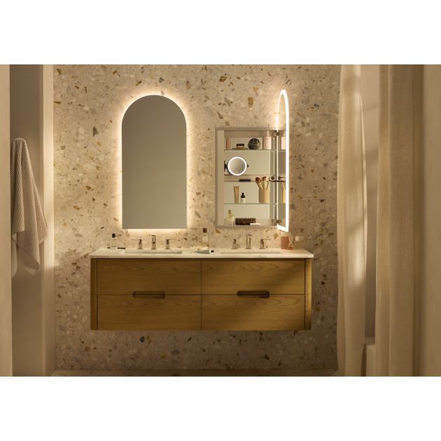 - Ease into morning tasks and relax into nighttime rituals with an illuminated interior cabinet that lets you easily locate all your grooming and styling tools.