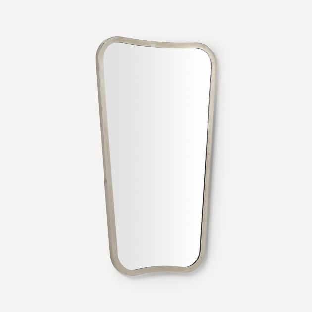 The Contour Metal Mirror is a fluid form with a curved inverted frame that appears to seamlessly flow around a crystal clear, unbeveled mirror. The design’s sweeping frame is a visual treat, dipping slightly inward at the top and bottom with long sides that slightly narrow before connecting the top to the lower frame.