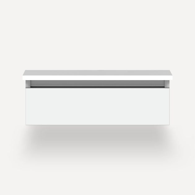 • Optional Silestone Engineered Stone vanity tops are available in Lava Black, Stone Gray or Quartz White and include a separate white porcelain rectangular sink or as a dry top. White glass vanity tops with integrated glass sinks can help you build a look you'll love. Available with single hole or three hole (8" widespread) faucet drillings.