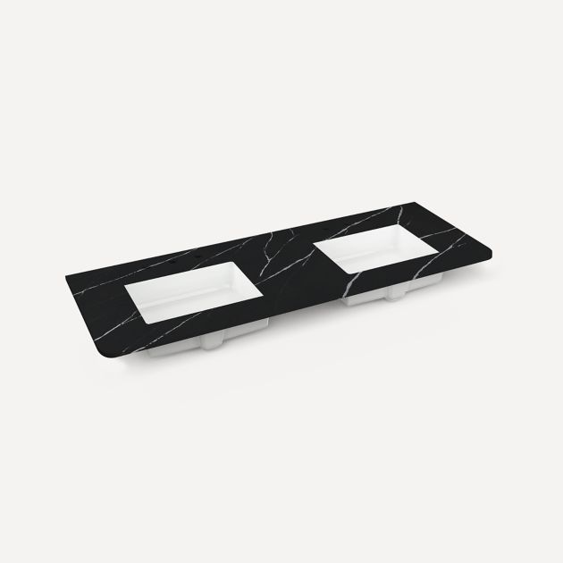 - Our quartz stone tops feature a white rectangular sink, with overflow, in an 1-1/8" thickness and mineral cast integrated sink with removable drain cover in 6" thickness.