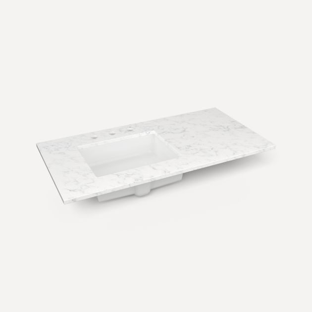 - Precisely engineered, our quartz vanity tops combine the natural beauty of stone with superior durability that can withstand the busiest areas of your home. The non-porous surface is resistant to stains, mildew, and bacteria, while the color consistency of quartz ensures a polished, pristine look.