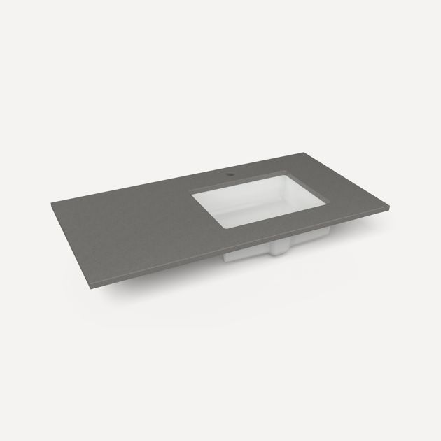 - Precisely engineered, our quartz vanity tops combine the natural beauty of stone with superior durability that can withstand the busiest areas of your home. The non-porous surface is resistant to stains, mildew, and bacteria, while the color consistency of quartz ensures a polished, pristine look.
