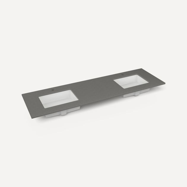 - Our stunning glass top features a rectangular integrated sink, without overflow, in a 19/32" thickness. Our quartz stone tops feature a white rectangular sink, with overflow, in a 3/4" thickness.